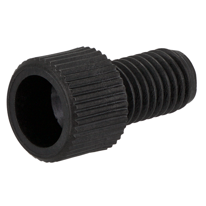 Tubing Connector Nuts, low pressure, 2 mm, Carbon PEEK Endure, Black with 1/4-28 screw threads, for use with capillary tubing. ARE-Applied Research brand. 10/PK.