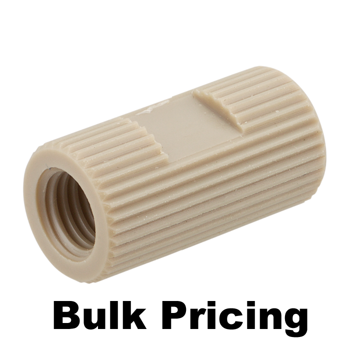 These wider bore, all-PEEK adapters have one side with a 1/4-28 threaded female port, and the other side is a female Luer slip connection.