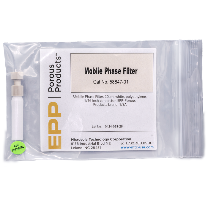 Mobile Phase Filter, 20 um, white, polyethylene, 1/16 inch connector. EPP-Porous Products brand. Bulk Price.