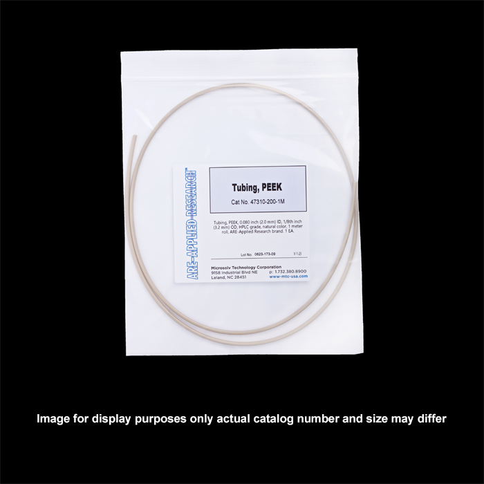 Tubing, PEEK, 0.080 inch (2.0 mm) ID, 1/8th inch (3.2 mm) OD, HPLC grade, natural color, 1 meter roll, ARE-Applied Research brand. 1 EA.