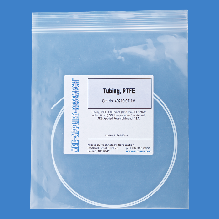 Tubing, PTFE, 0.007 inch (0.18 mm) ID, 1/16th inch (1.6 mm) OD, low pressure, 1 meter roll, ARE-Applied Research brand. 1 EA.