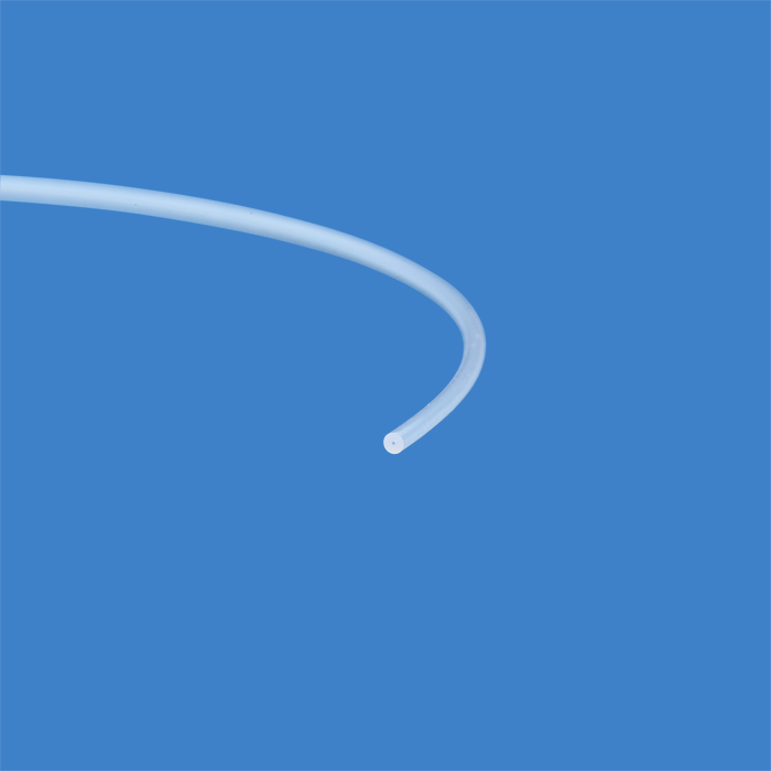 This PTFE (Polytetrafluoroethylene) tubing is extruded from virgin PTFE. No additives are added to the original PTFE material, except for particles for color coding.