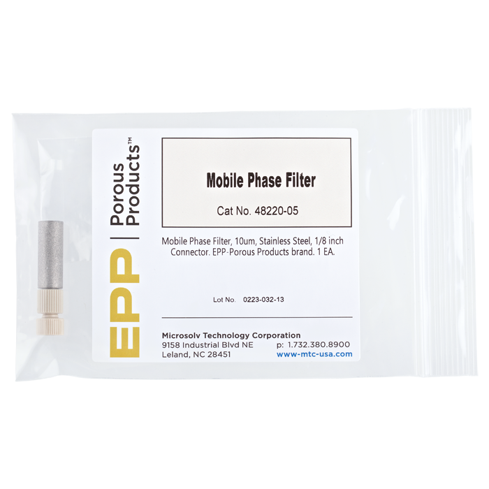 Mobile Phase Filter, 10 um, Stainless Steel, 0.375 inch OD, 1 inch long, 1/8 inch connector. EPP-Porous Products brand. Bulk Price.