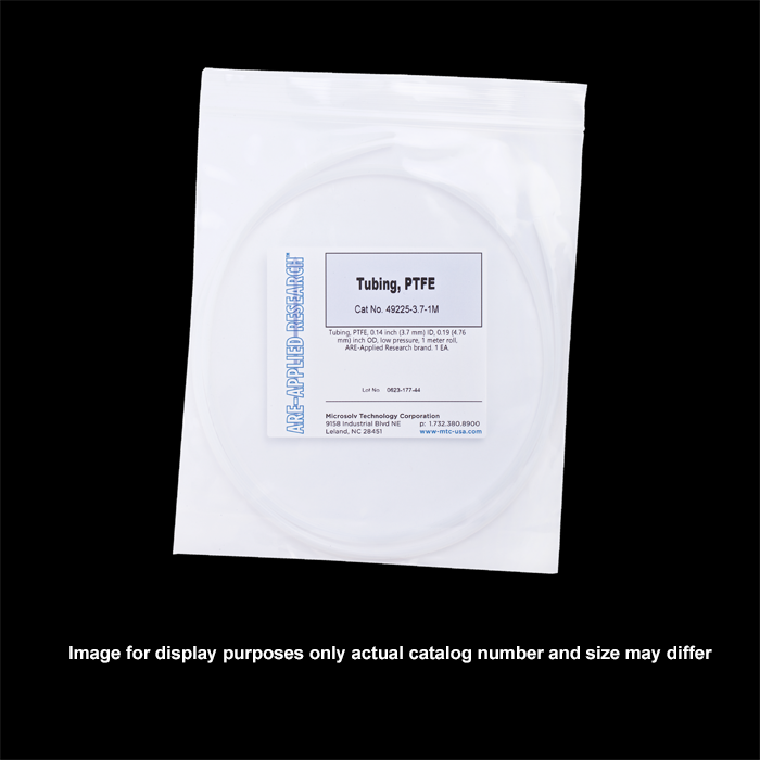 Tubing, PTFE, 0.14 inch (3.7 mm) ID, 0.19 (4.7 mm) inch OD, low pressure, 3 meter roll, ARE-Applied Research brand. 1 EA.