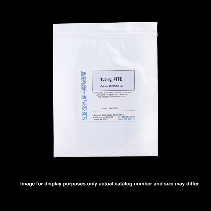 Tubing, PTFE, 0.011 inch (0.3 mm) ID, 0.031 inch ( 0.8 mm) OD, low pressure. Your custom continuous length Tubing, priced per meter. ARE-Applied Research brand.