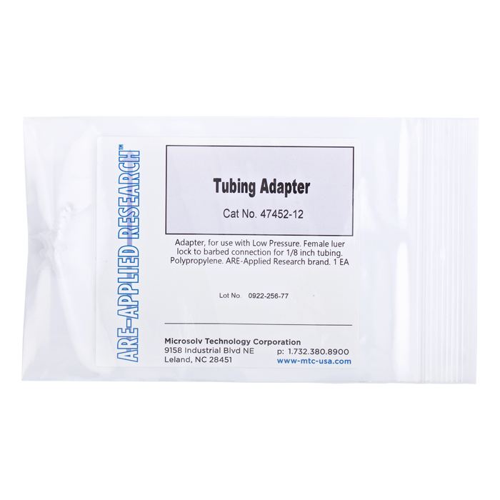 Adapter, for use with low pressure. Female luer lock to barbed connection for 1/8 inch tubing. Polypropylene. ARE-Applied Research brand. Bulk Price.