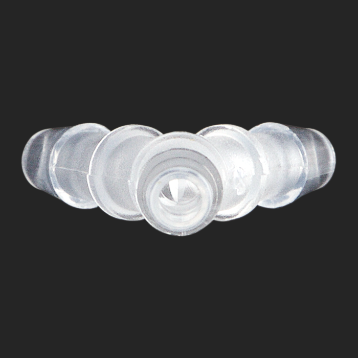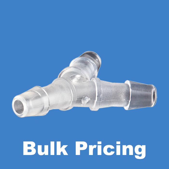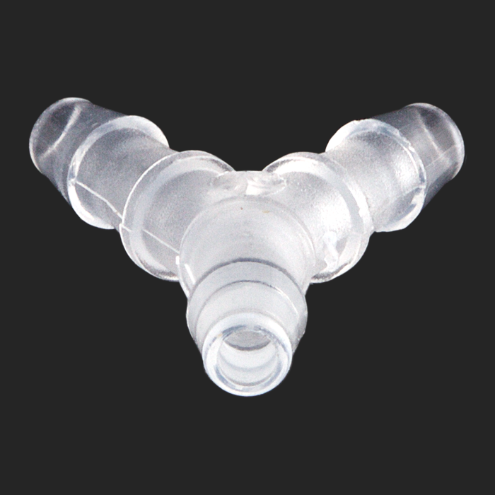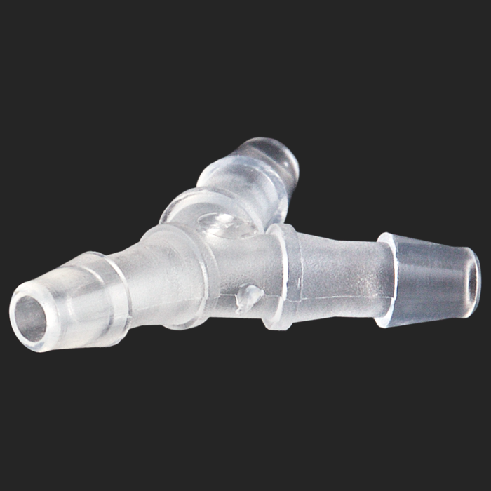 This polypropylene union has three barb connections that allows you to split or combine low pressure flow of liquid within 1/16th inch ID, low pressure tubing.