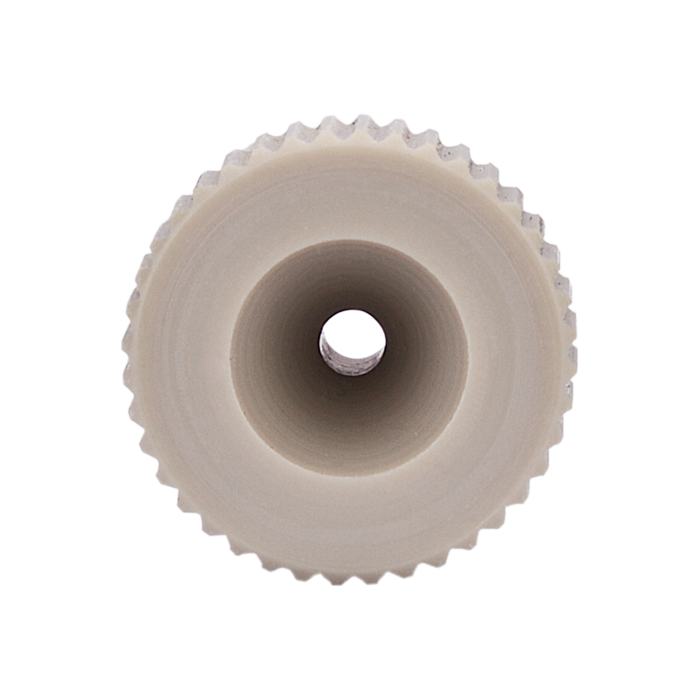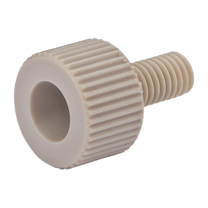 Tubing connector fittings, high pressure, two pieces, 1/16 inch, PEEK, natural, large head, standard length and 10-32 screw threads. Use with double cone ferrules. Finger tighten, ARE-Applied Research brand. 5/PK.