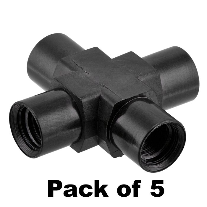 Union, Connector, Cross, high pressure, 1.0 mm / 0.040 inch through hole with 1/4-28 screw threads, Carbon PEEK Endure, Round with an Internal X. Use with 1/16 tubing. ARE-Applied Research brand. 5/PK.