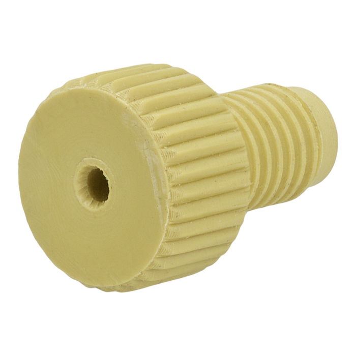Tubing Connector Nuts, low pressure, 1/16 inch, PEEK, Yellow with 1/4-28 screw threads, for use with flange free, polymeric tubing. ARE-Applied Research brand. 10/PK.