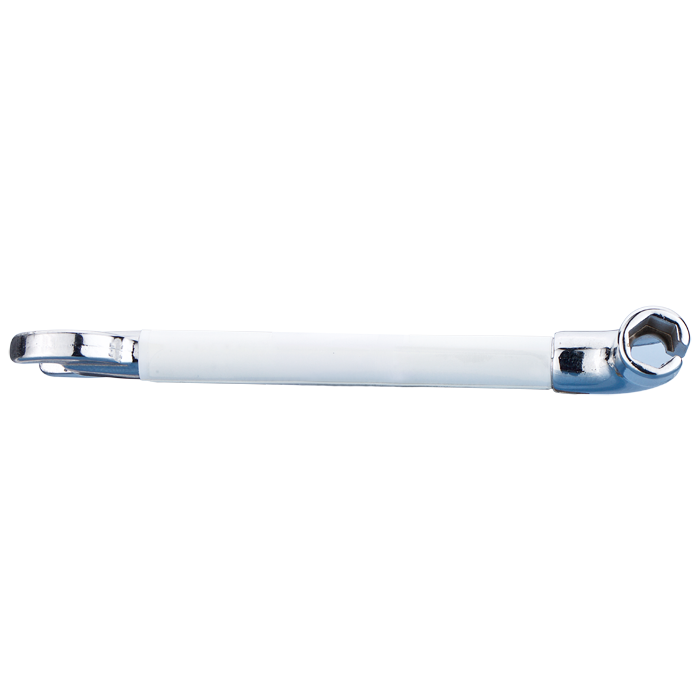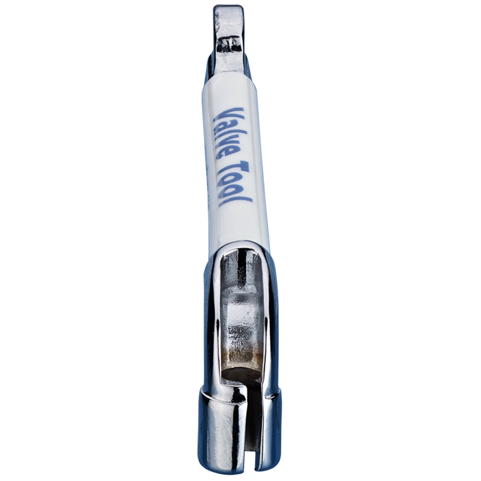 Easy to tighten or loosen the 1/4 inch connecting nuts without twisting the tubing during wrenching. The opposite end of this valve tool is a 5/16 inch flat wrench.