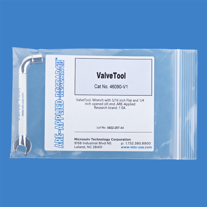 Valve Tool, wrench with 5/16 inch Flat and 1/4 inch opened slit end. ARE-Applied Research brand. 10/PK.