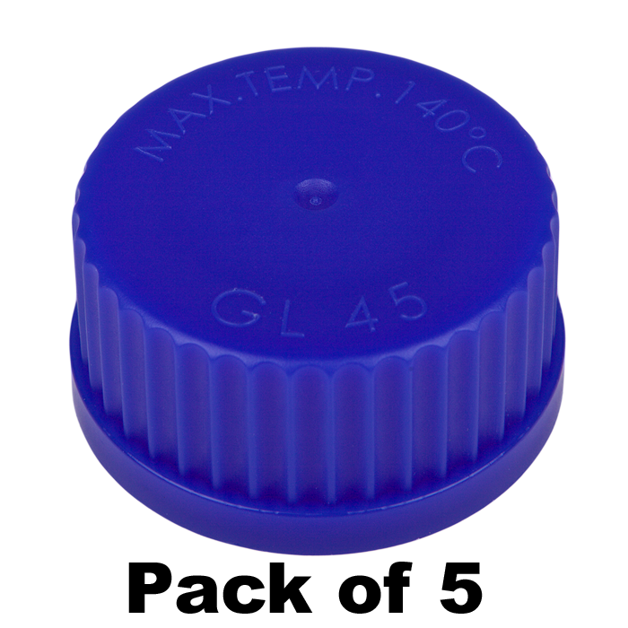 Cap, Screw Top, GL45 Threads, Blue, Solid without a Liner. ARE-Applied Research brand. 5/PK.