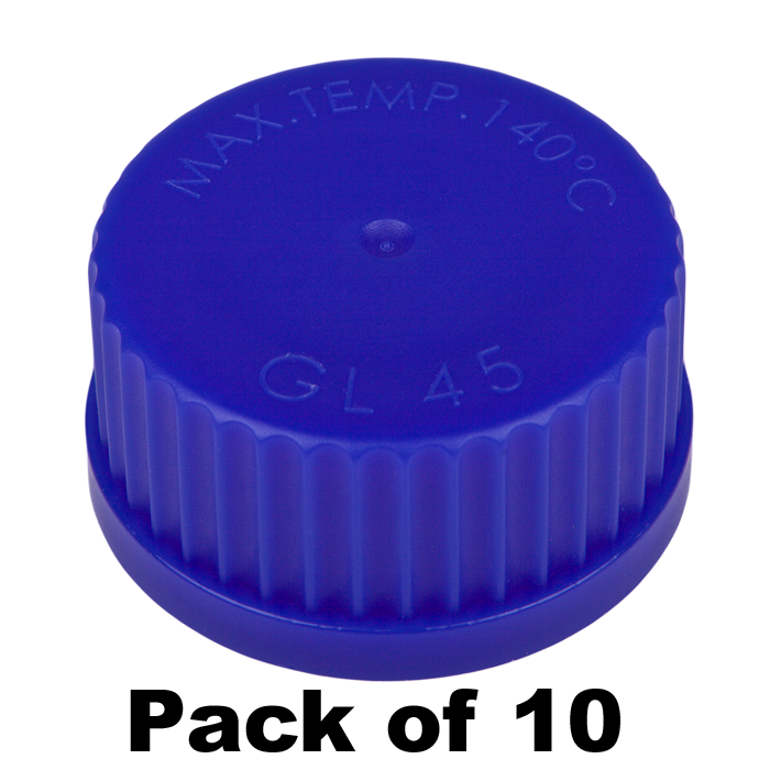 Cap, Screw Top, GL45 Threads, Blue, Solid without a Liner. ARE-Applied Research brand. 10/PK.