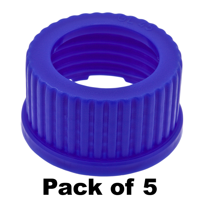 Cap, Mobile Phase Delivery, Replacement. Blue, GL45 Threads and Open Hole. ARE-Applied Research brand. 5/PK.