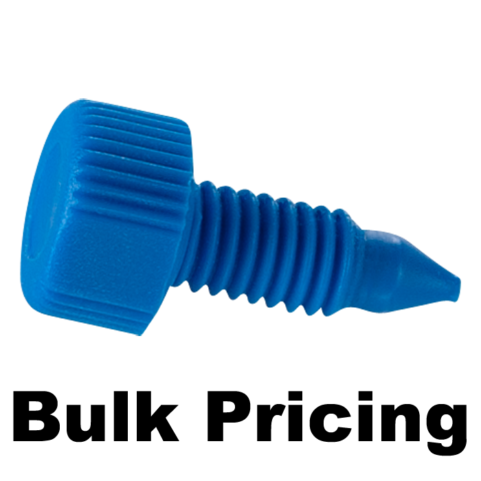 End Plugs, for HPLC Columns. Nylon 10-32 Thread. Blue. ARE-Applied Research brand. Bulk Price.